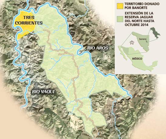 2014Con el apoyo del Programa para la Conservación de Especies en Riesgo, Naturalia trabajó en la identificación de áreas de distribución histórica en Sonora del castor para una posible reintroducción. Se impulsan proyectos de conservación a través del ecoturismo con las comunidades indígenas y campesinas del Corredor Biológico Chichinautzin. Este año, la Reserva Jaguar del Norte cumple 10 años, con más de 22,000 Ha de refugio para el gran felino y más de 300 especies nativas de mamíferos, reptiles, anfibios y aves. Y contribuye a proteger a la fauna en una superficie aproximada de 40,000 hectáreas. Banorte dona a Naturalia para integrar a la Reserva para el Jaguar del Norte el terreno Tres Corrientes, con 1,500 Ha para proteger al jaguar mexicano.